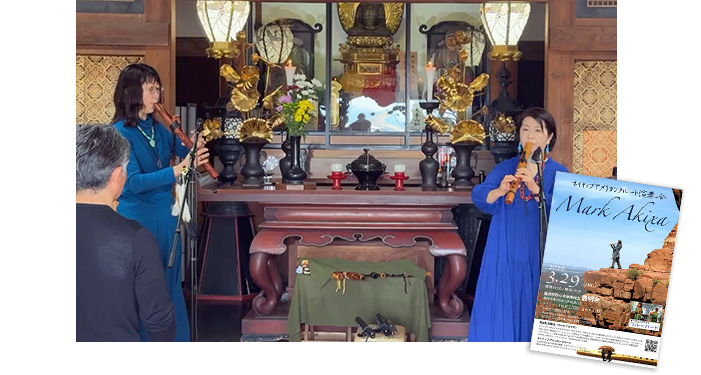 桜咲き風薫る季節、私の師匠ネイティブアメリカンフルート奏者、マークアキクサさんの演奏会が我故郷静岡市由比のお寺で行われ、私は2年前と同じように「ブルーバード」でオープニングアクト=前座を務めました。